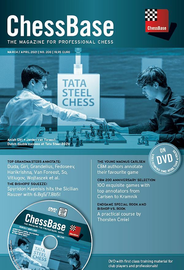 With Von Brühl - Philidor (London 1783), Dorian Rogozenco chose an “absolutely impressive” game from the 18th century for the anniversary issue of CBMagazine. The German national coach was particularly impressed by Philidor's prophylactic approach, which was unusual for the time. His play shows again and again that prevention of the opponent’s activity has top priority - which, however, did not always allow him to find the objectively best continuation in the game. Moreover, Rogozenco points out that the strategic principle of consistently playing against one weakness is explored in great style, forcing victory in the endgame.