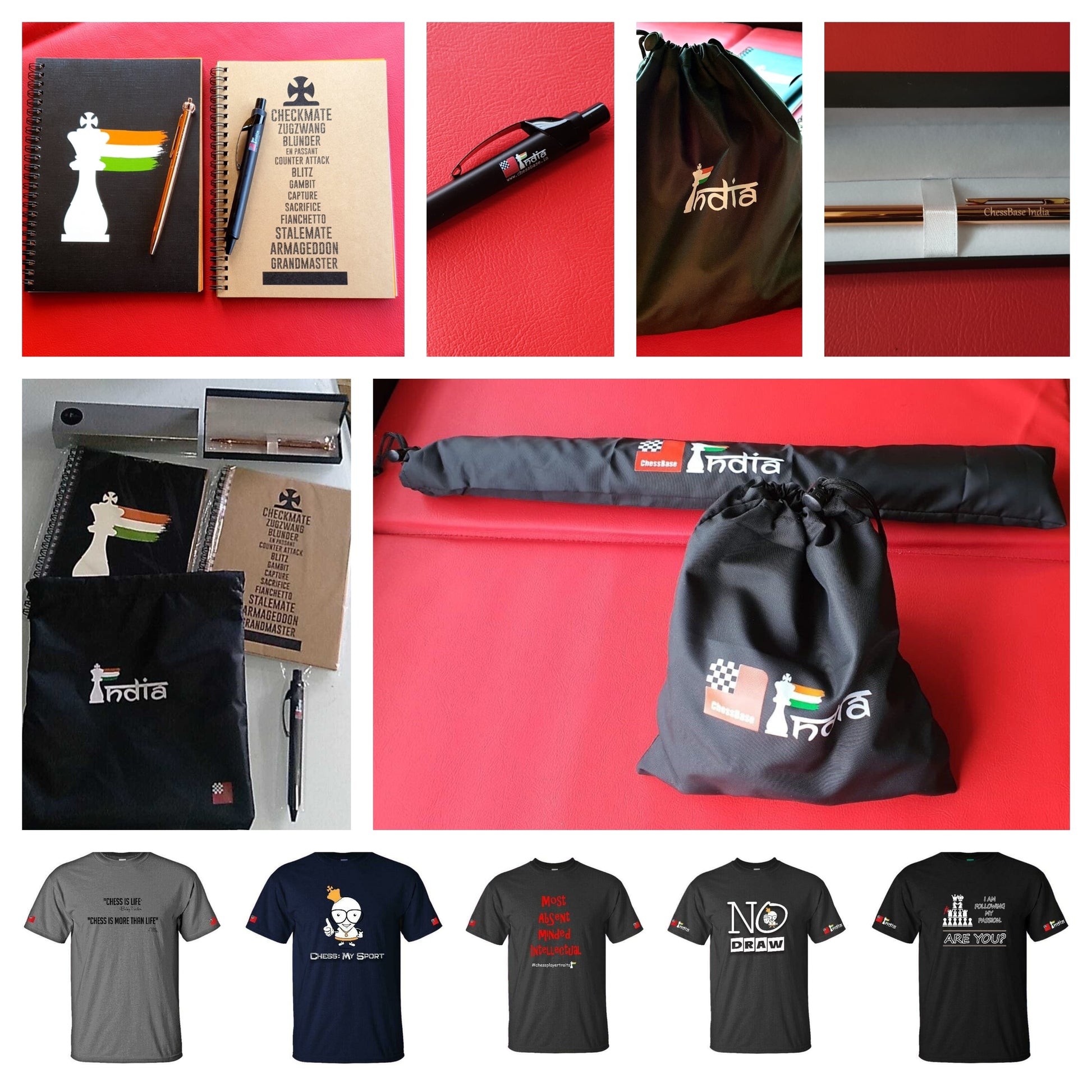 Gold Gift Hamper: Chess Set + T-Shirt + 2 Notebooks + 2 Pens + Pouch
